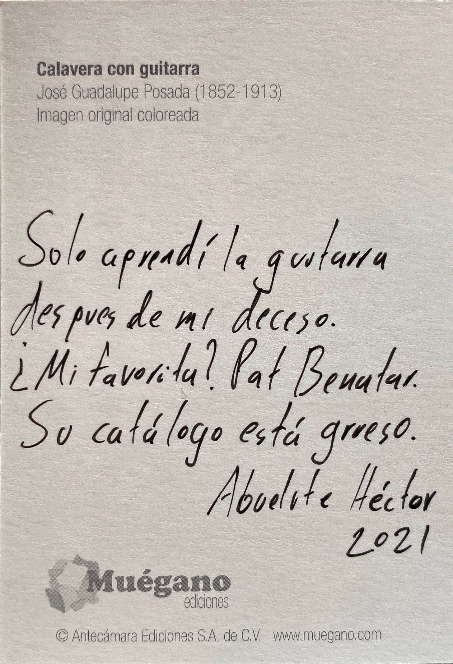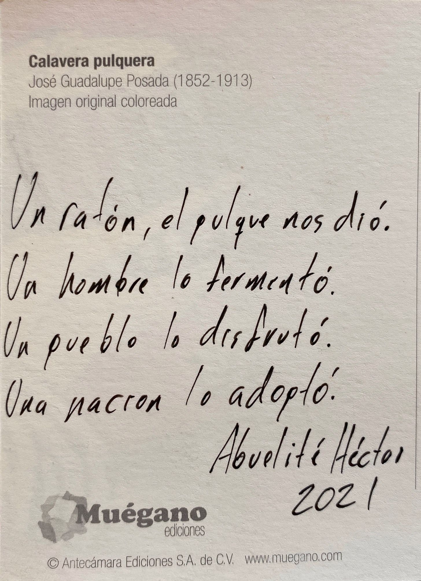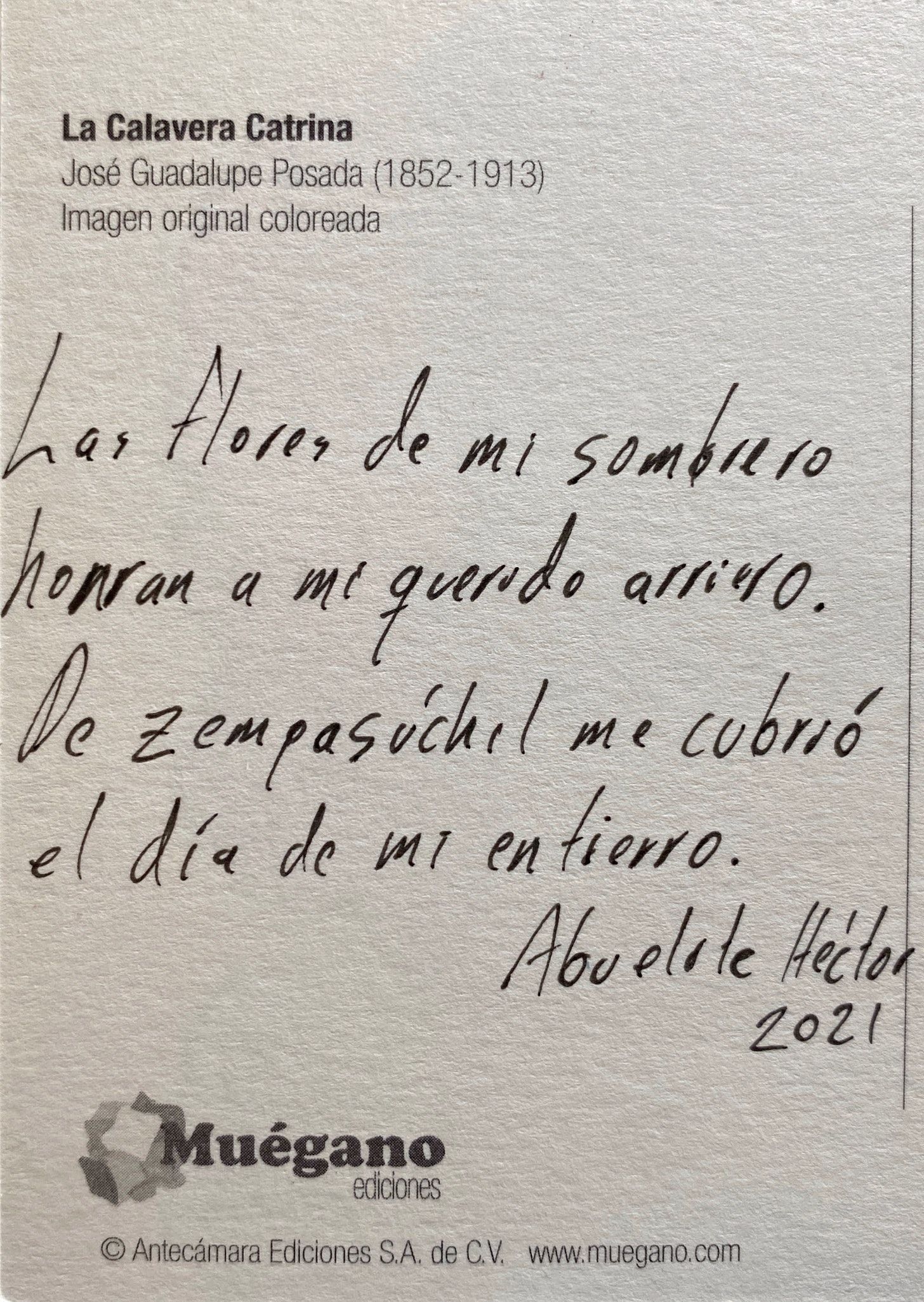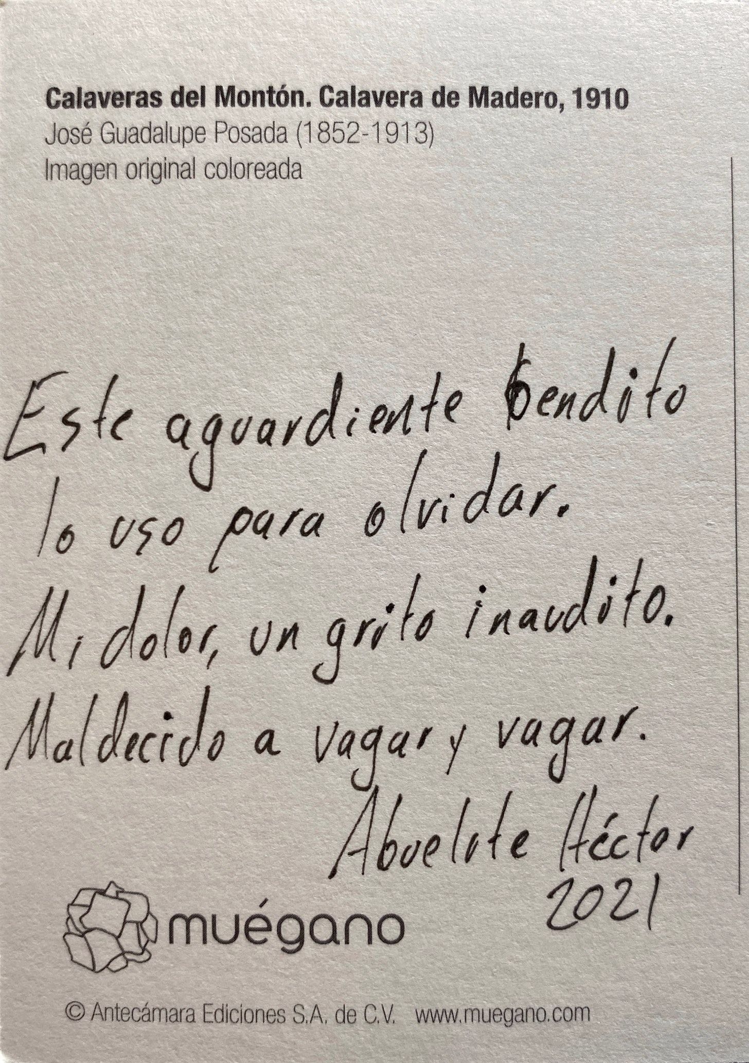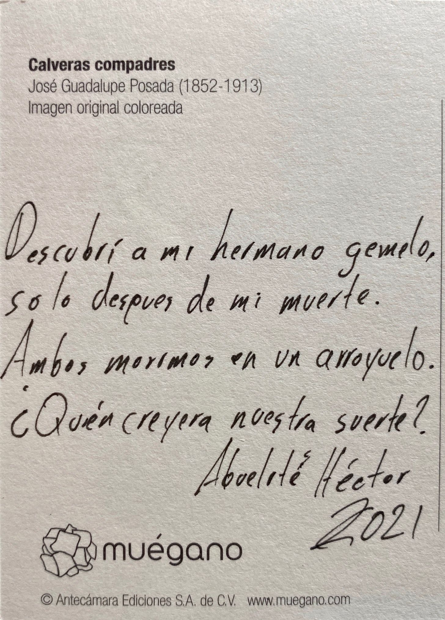 On my last trip to Mexico City, I found these postcards with the art of José Guadalupe Posada. These images depict skeletons, not as frozen reminders of our mortality but as vivacious and lively entities. Posada’s art celebrated our dearly departed as the people we knew. His work would influence Diego Rivera and lead to the iconic calavera catrina.