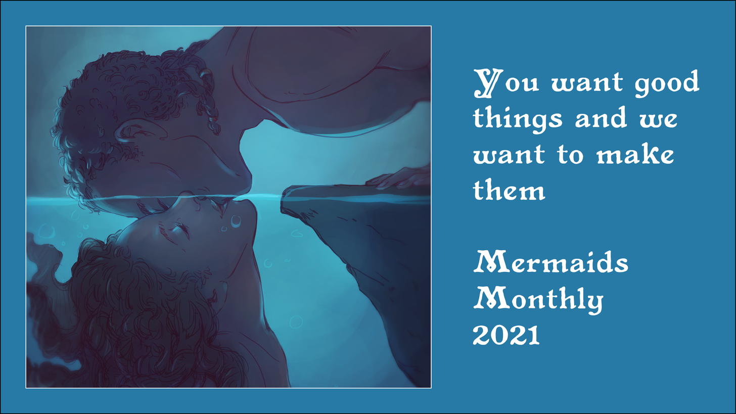 The idea for Mermaids Monthly came from an answer I have given over the years in interviews and on panels about editing. Often people ask if editors really have to reject stories they like, and my answer is yes. This happens for a variety of reasons, but one reason is that an editor has to think about the overall balance of what they're curating. If you're an editor for a non-themed magazine, for instance, you can buy one mermaid story, and that's fine. You can maybe buy two and get away with it. If you buy three? Well, congratulations! You are now That Mermaid Magazine, which is fine if you're Mermaids Monthly, but not so great if you are Strange Horizons.