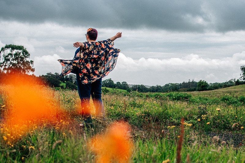 Image description: for fun, me twirling in a filed of wildflowers. Honestly, mostly for the floaty top!